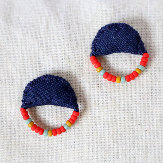 Hand stitched textile jewelry. Ashdel is a collection of modern textile jewelry created from vintage sewing notions and glass beads.