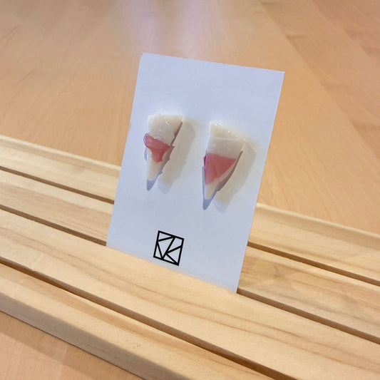 Katie Kismet designs are handcrafted using a variety of glass types and techniques and kiln-fired to over 1500 degrees. The shape of the glass, the way it's assembled, and how it's fired all affect the outcome, and there are countless ways to play with those variables. Most designs require multiple firings with refining between each. From the first cut to the finishing touches, many Katie Kismet styles take upwards of 20 hours to create.