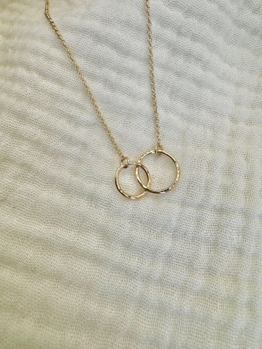 Necklace - Mixed Metals Half Stainless Half 14k Gold-filled Hammered Circle Necklace WBJ