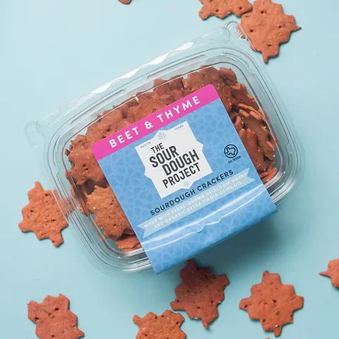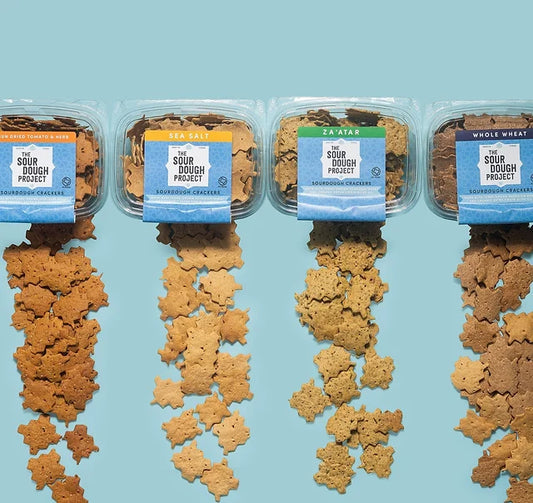 The Sourdough Project began as a home baking experiment and grew into a passion for handcrafted sourdough crackers. Made by hand in small batches, their tangy, flaky crackers use organically grown Texas heirloom wheat, fresh-milled flour, olive oil, sea salt, and slow fermentation for unmatched flavor.