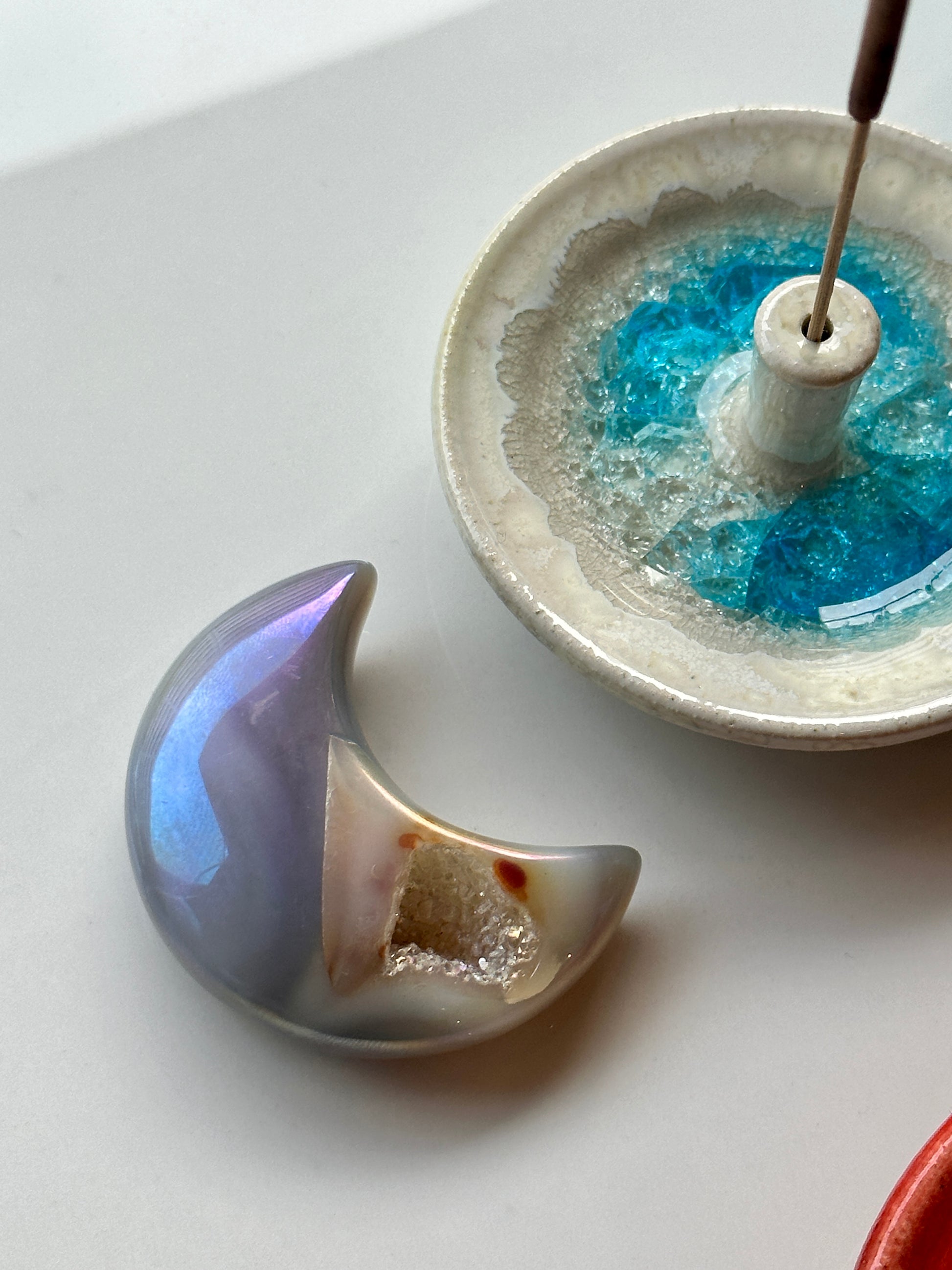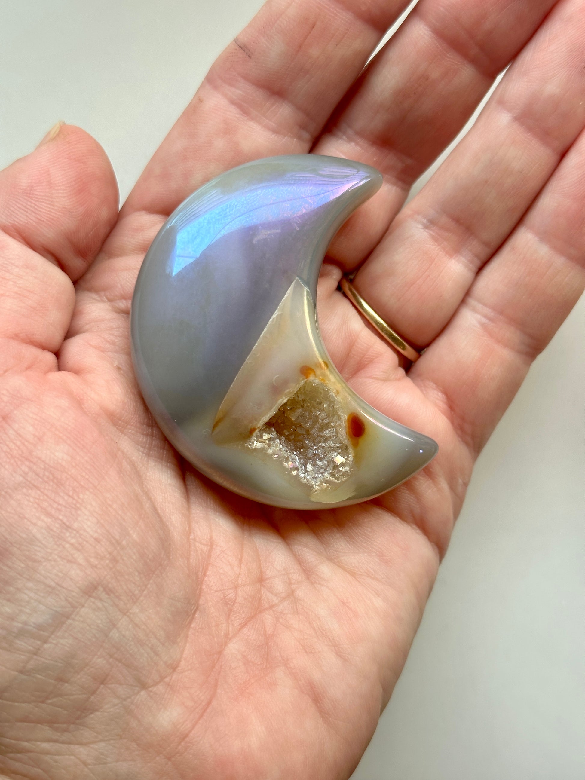 Aura Quartz - aligns with the throat chakra and aids in your spiritual protection. Increases our connection to angels and the angelic realms, boosts our aura, gives protection and links to matters relating to your karma and the akashic records.