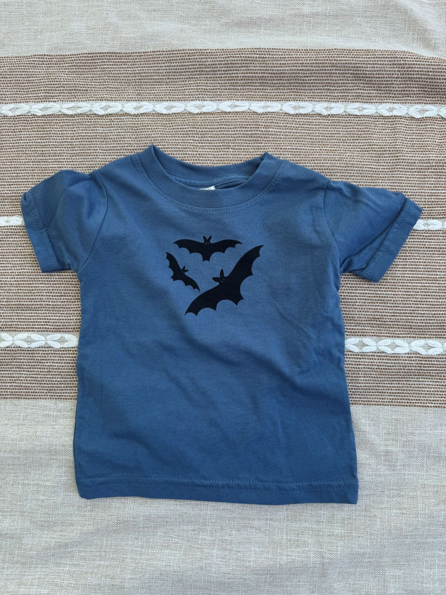 Hand printed Austin Bat Tee for babies and toddlers. Printed on super-soft Rabbit Skins brand tee. Artist's original design.