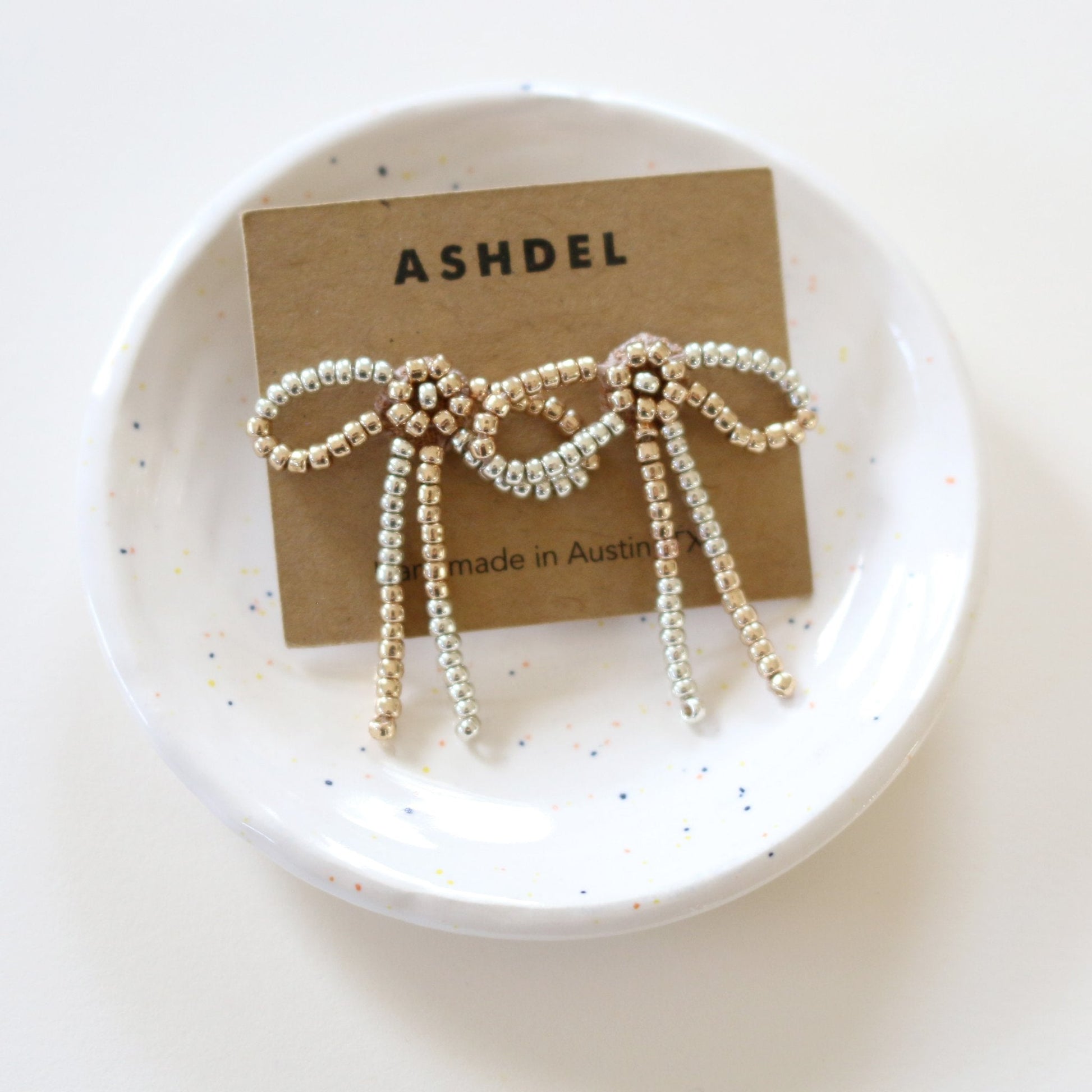 Store away from light and dust. Avoid direct contact with perfumes as they may discolor glass beads. If earrings get wet, completely air dry.