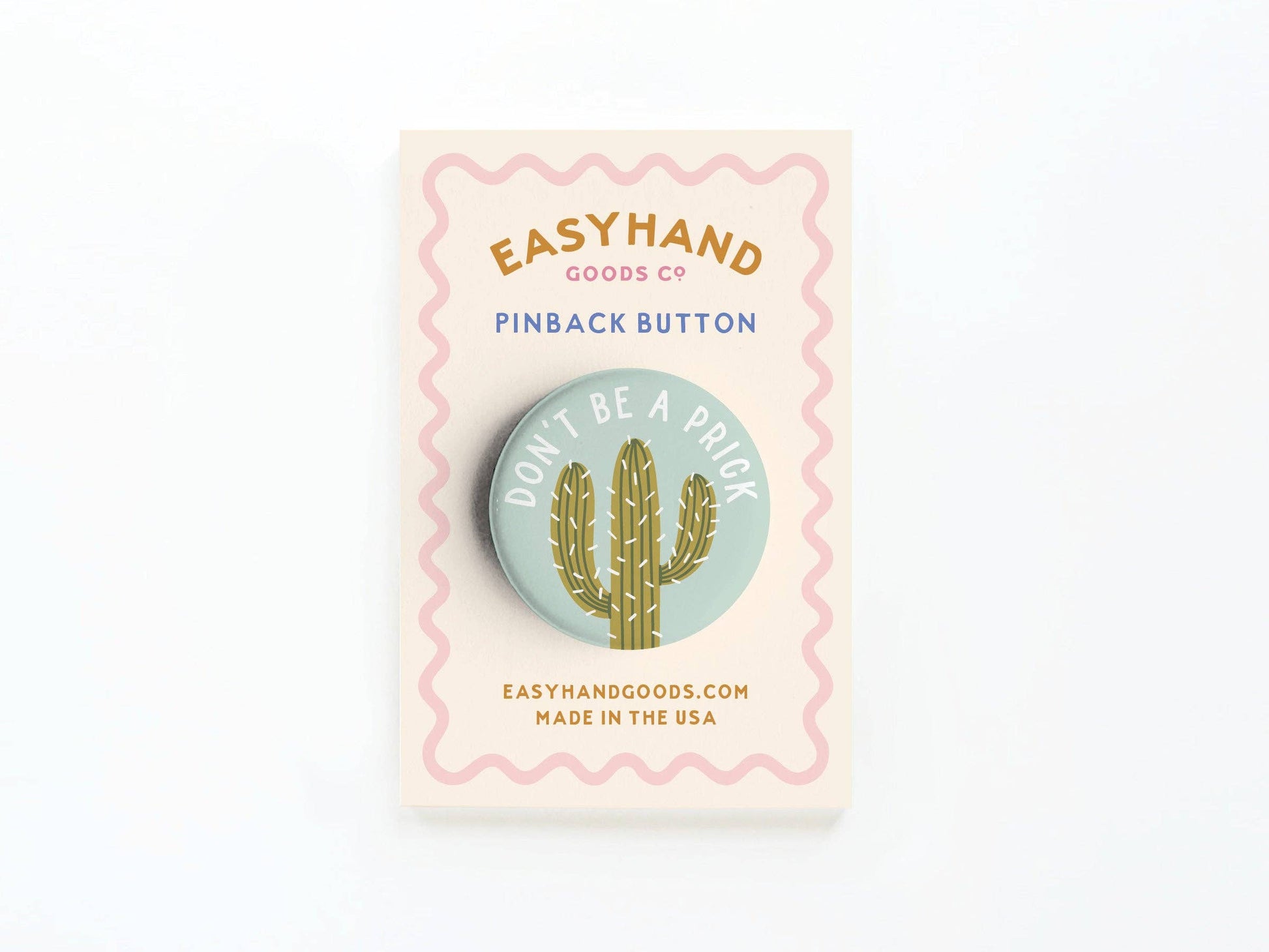 Inject some wit into your outfit with our Don’t Be a Prick Button, a playful reminder to stay kind and considerate.