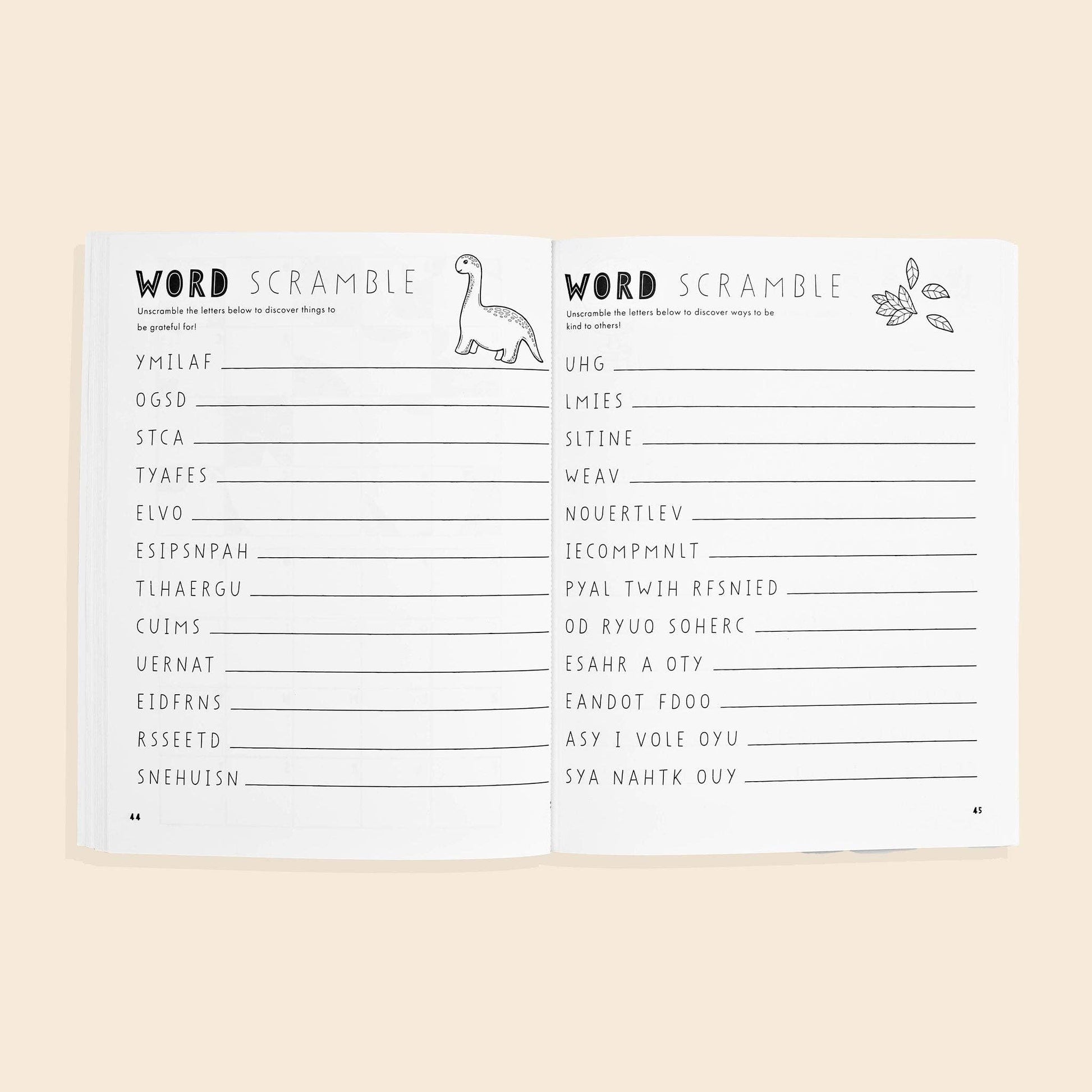 A fun, educational activity book that teaches kids gratitude and kindness—perfect for gifting, classrooms, and childrens displays.