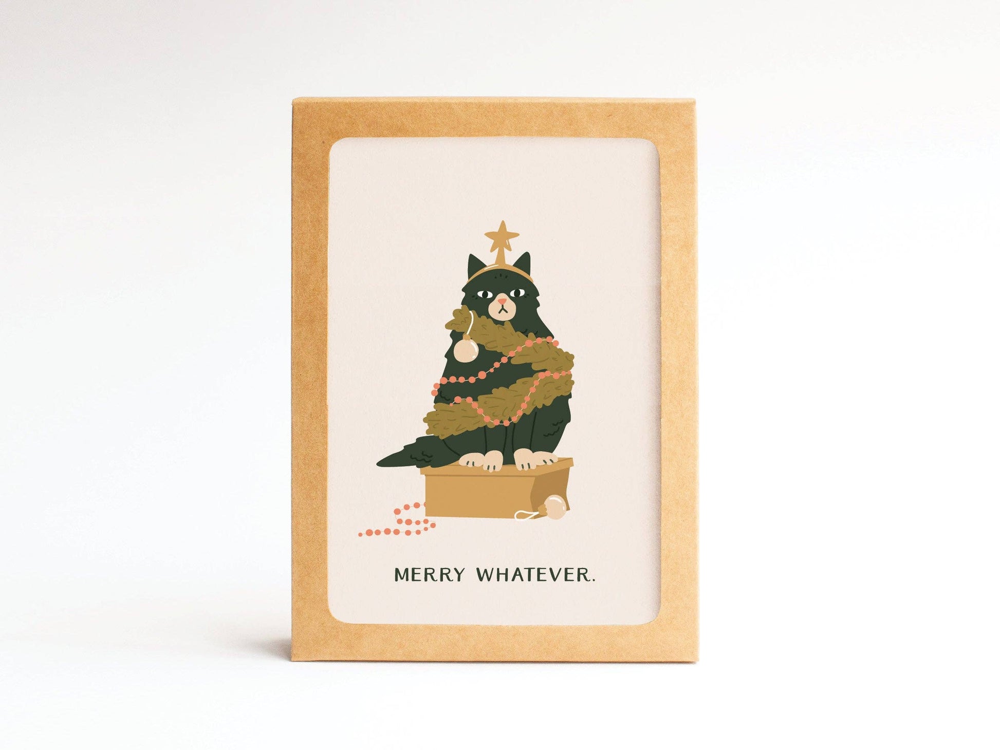 Merry Whatever Cat Folded Greeting Note Set of 10