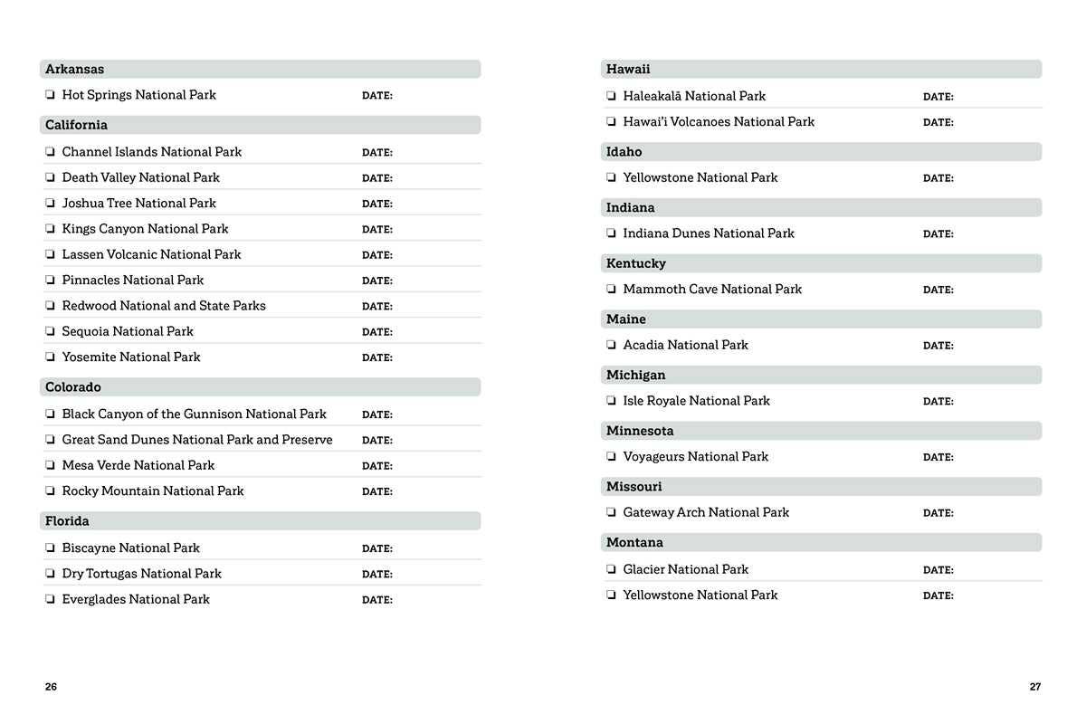 Your national parks adventure starts here! Whether you’re planning a road trip to visit the Grand Canyon, a hiking excursion through Acadia, or spending a day in the Everglades, this book is your must-have companion for the perfect trip to any of the parks across the United States. Start by learning more about the national parks themselves and get some essential planning advice from experts to make your trip as easy and fun as possible. Then use the planning pages to plan and record an adventure of your own. You’ll be prepared for everything from paying park fees to figuring out which landmarks you want to see the most. Record pages will help you remember anything fun and exciting that happens on your trip—as well as anything you want to do differently on your next visit.