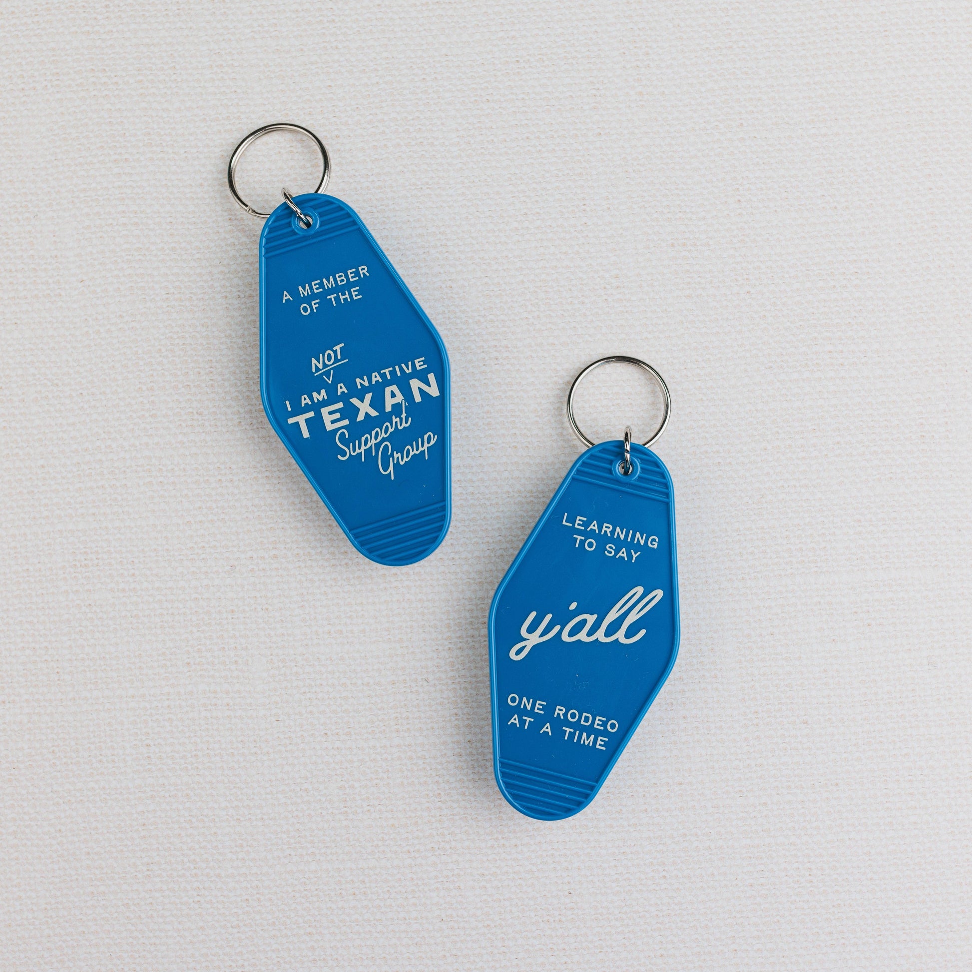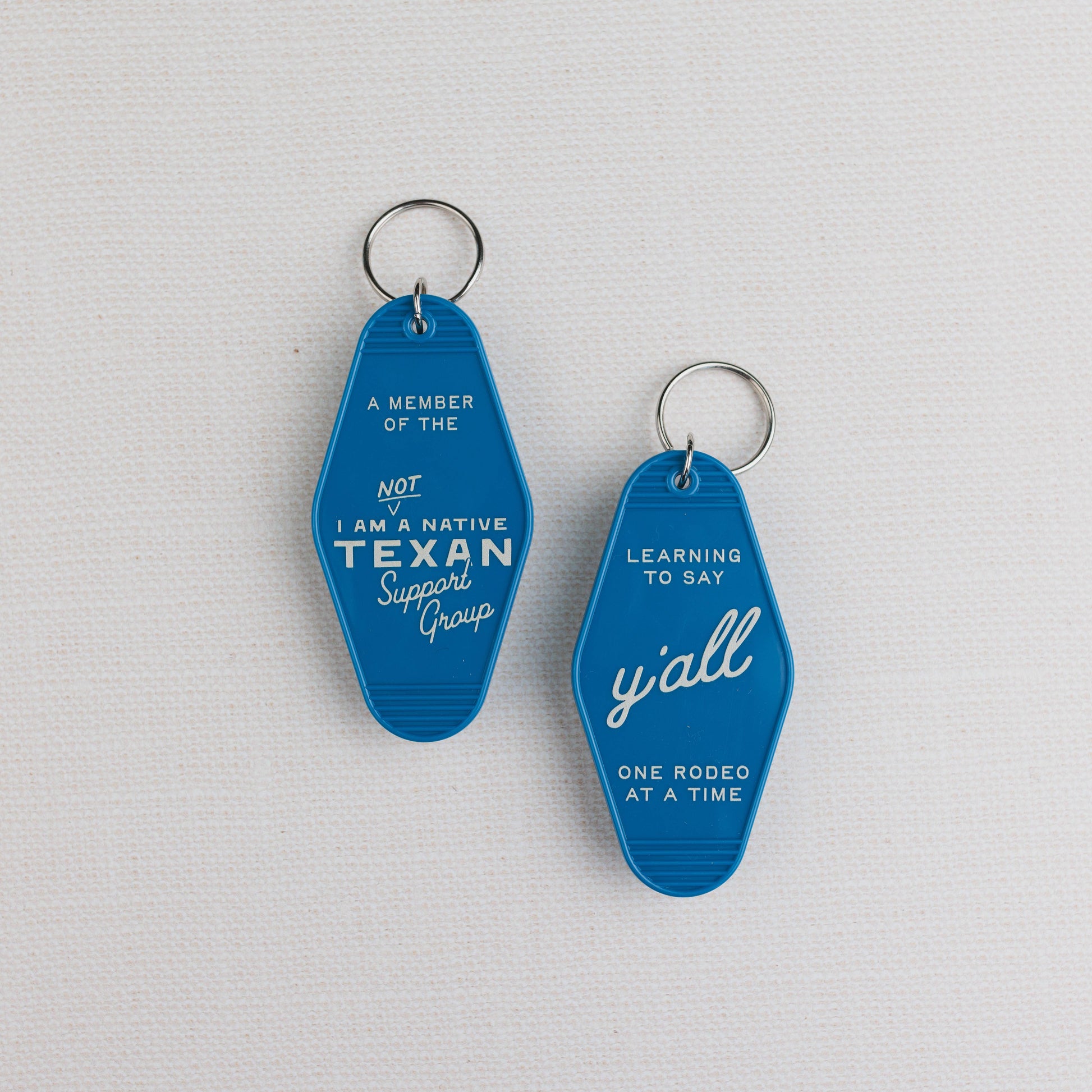 Time for the non-Native Texans to be represented! Popular gifts (realtors love to give them to Texan newbies!): these keychains have an audience.