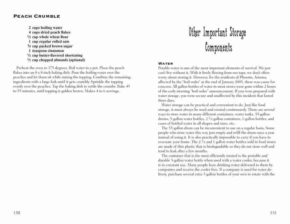The Prepared-Not-Scared Cookbook reveals how to create a 5-week comprehensive menu plan, build and keep a 72-hour food kit, and where and how to shop for food items. It provides a clear game plan during emergencies, and highlights how implementing a food storage strategy can keep you feeling in control during a crisis.