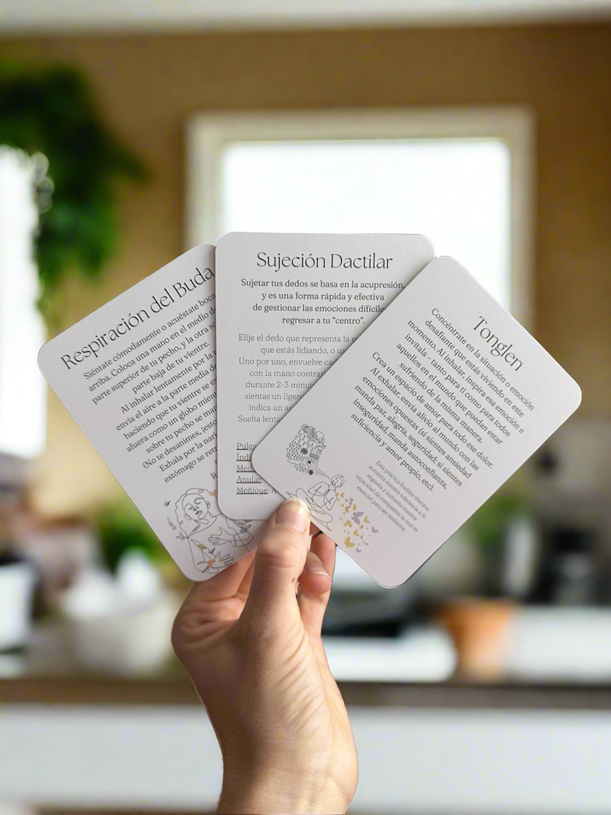 "Hackea Tu Sistema Nervioso" incluye 60 cartas únicas, cada una con diferentes actividades diseñadas para ayudarte a reducir el estrés y promover la autoconciencia. Desde simples ejercicios de respiración hasta técnicas de tapping relajantes, estas actividades ofrecen un enfoque holístico para cuidar tu bienestar.