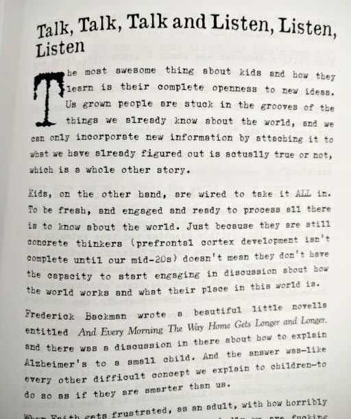 Dr. Faith G. Harper (bestselling author of Unfuck Your Brain) and counselor Bonnie Scott collaborated to write this short guide to raising intersectional feminist, empathetic, engaged, and generally non-shitty kids in these troubled times. Good info for parents of infants and adolescents alike on teaching the skills every human needs to be good, connected, happy, and change the world for the better.