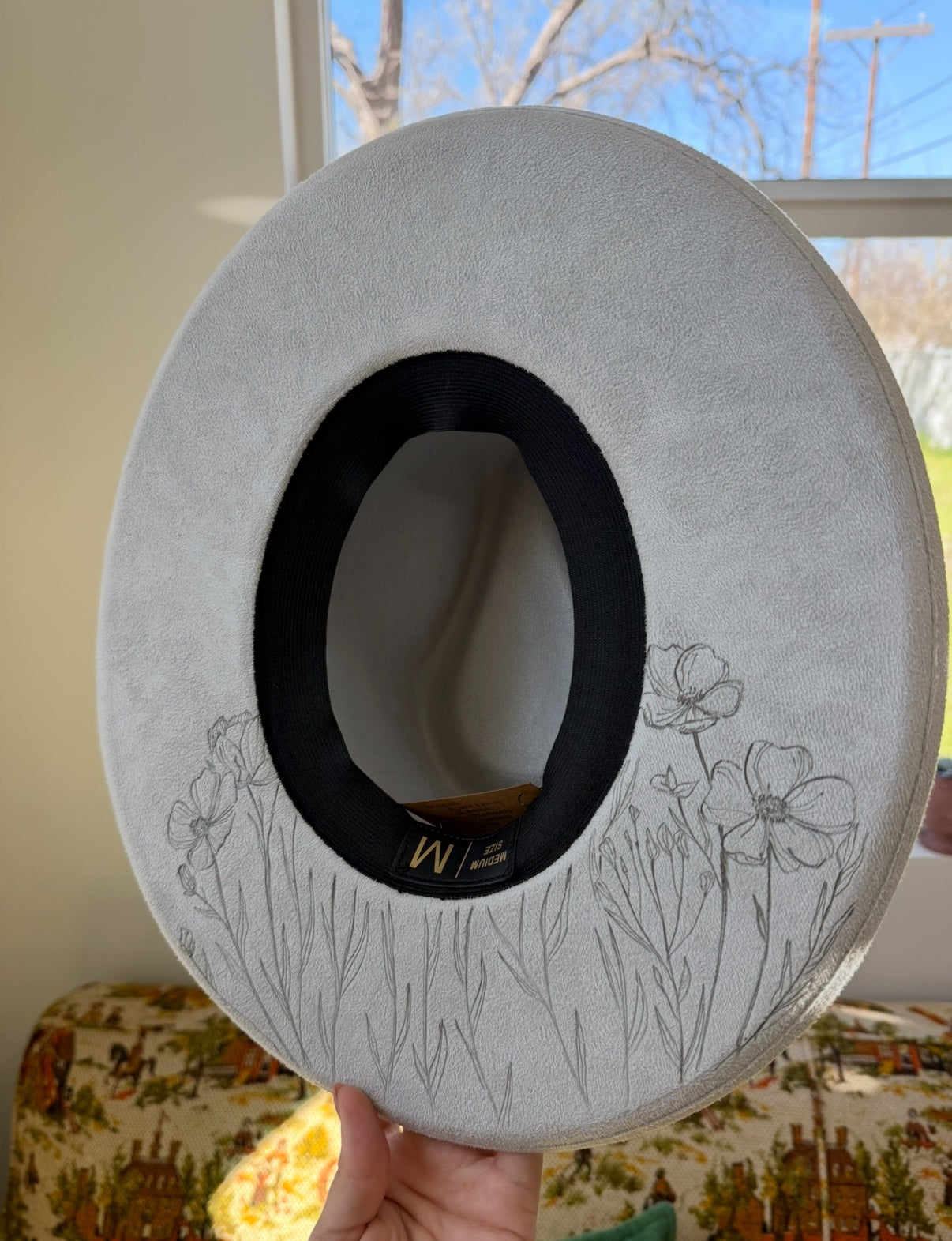 Custom burned and adorned hats by your Hat Girl Lost Valley.